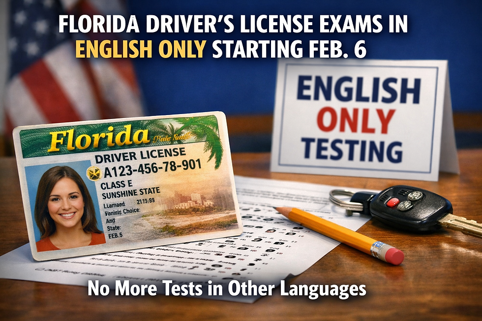 TALLAHASSEE, Fla. — Beginning Friday, February 6, 2026, the Florida Department of Highway Safety and Motor Vehicles (FLHSMV) announced a significant change to driver’s license testing across the state: all driver’s license knowledge and skills exams will now be administered exclusively in English. This policy ends multilingual testing options and translation services statewide.